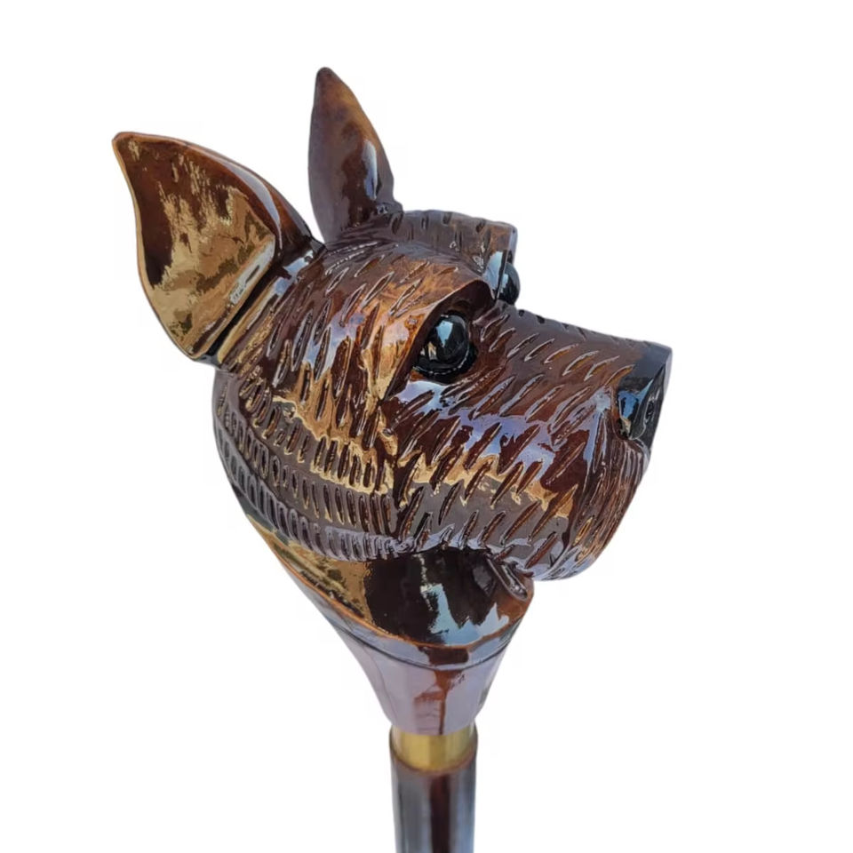 Handmade Adult Walking Stick Cane Foldable Wooden Wand with Animal Shape and Rubber Handle for Outdoor Hiking and Walking