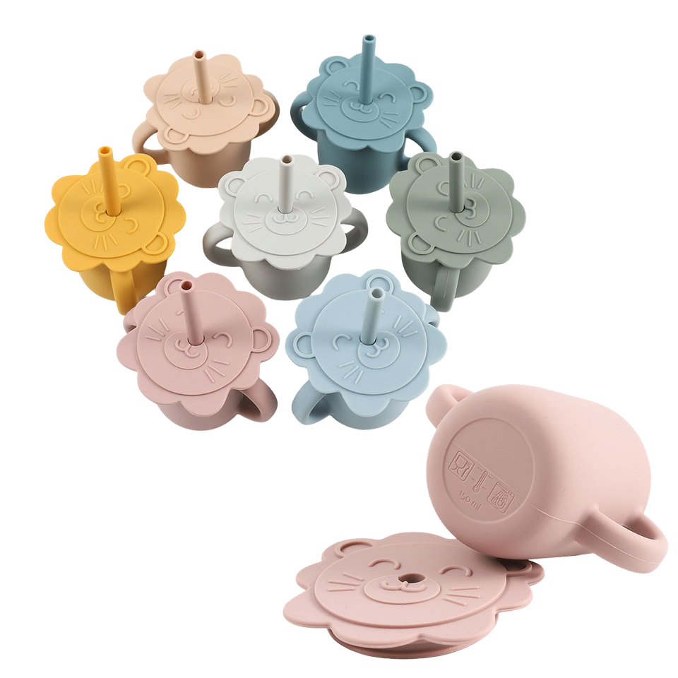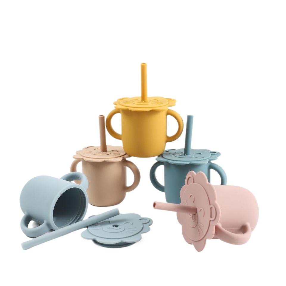 Animal Silicone Sippy Cup for Babies, Slow Flow Trainer Cup with Soft Handle & Lid, Shatterproof BPA Free Toddler Cup