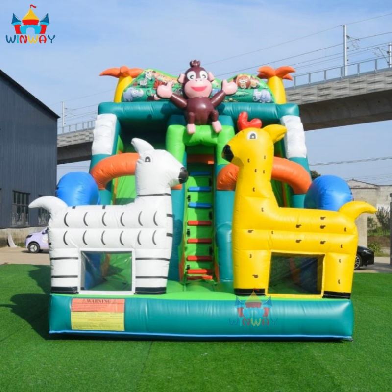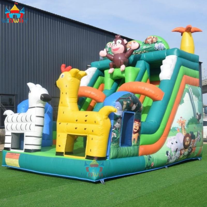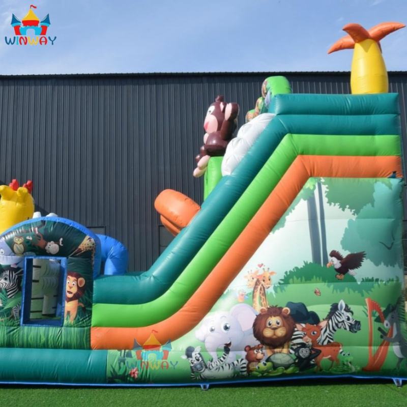 Animal Zoo Theme PVC Inflatable Bouncy & Water Slide Combo for Outdoor/Indoor Home Use
