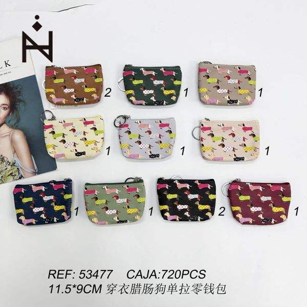 Ank Sausage Dog Wallet 11.5x9cm Single Zip Coin Purse Printed Cartoon Fashion Unisex Daily Use
