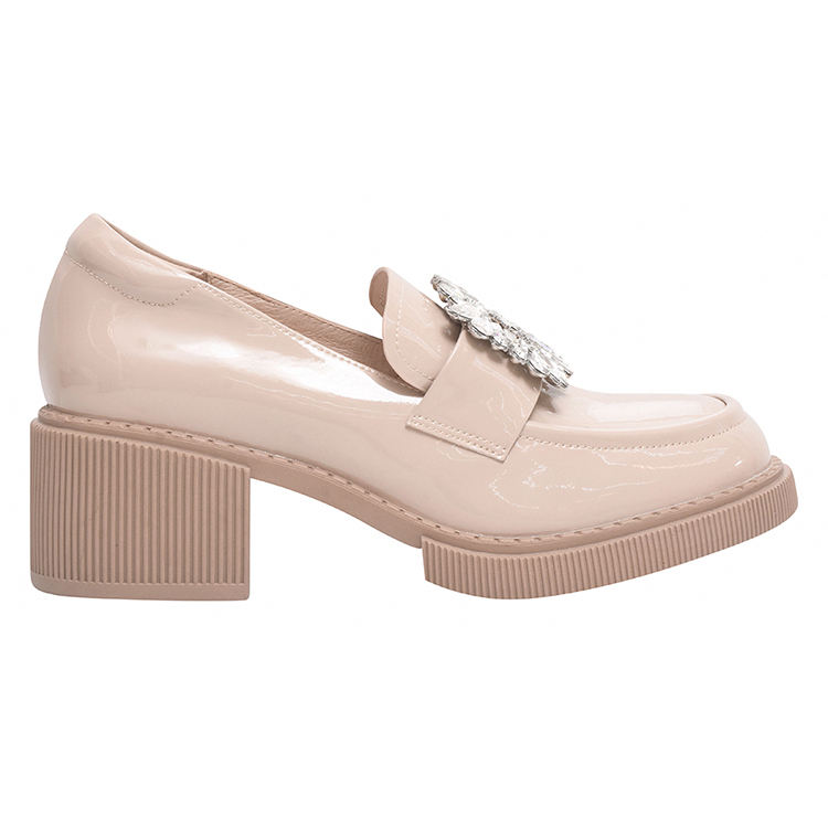 Ann'S 6Cm Black Crystal Buckle Patent Stretch Platform Loafers with Padded Heel Lining Arch Support Rubber Outsole for Women