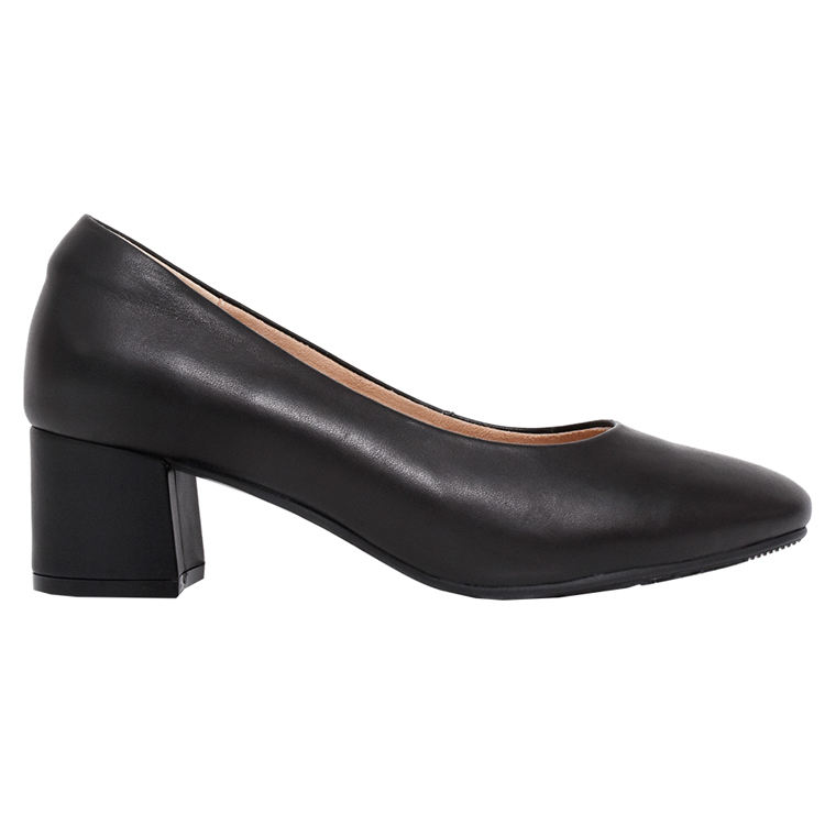 Ann'S Formal Genuine Sheepskin Round-Toe Pumps 5CM Comfortable Chunky Block Heel Slip-On Shoes Anti-Friction Cushion Padded Heel