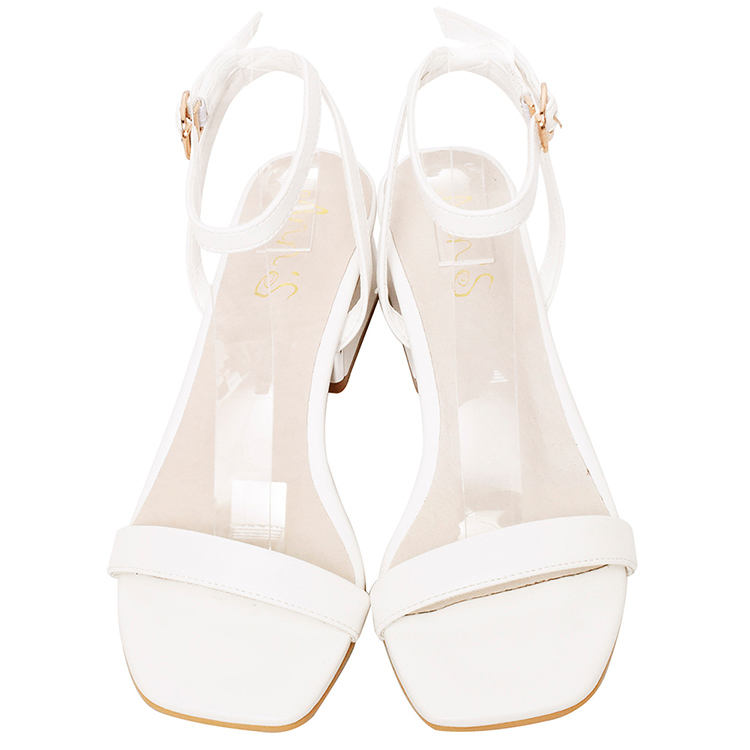 Ann'S Square Toe 4CM Strapless sandals Party Shoes Metal Block Heel Women Sandal Anti-slip sole Widened low heel sandals