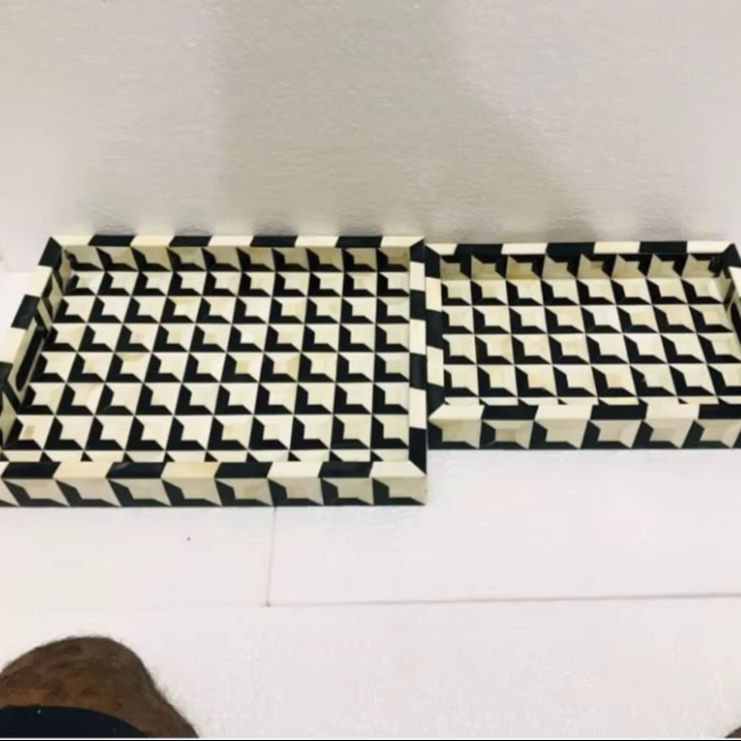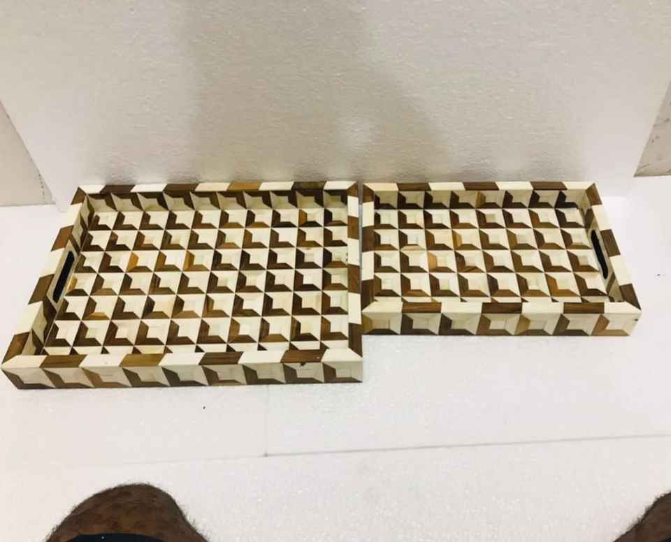 Annatto Wood Eco-Friendly Handmade Trays with Matching Boxes Elegant Engraving Carving for Home Decoration