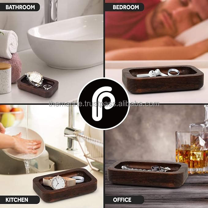 Anniversary Wood Dish Gift Tray Wooden Engagement & Wedding Ring Holder for Him Nightstand PC Jewelry Boxes Packaging Storage