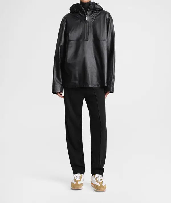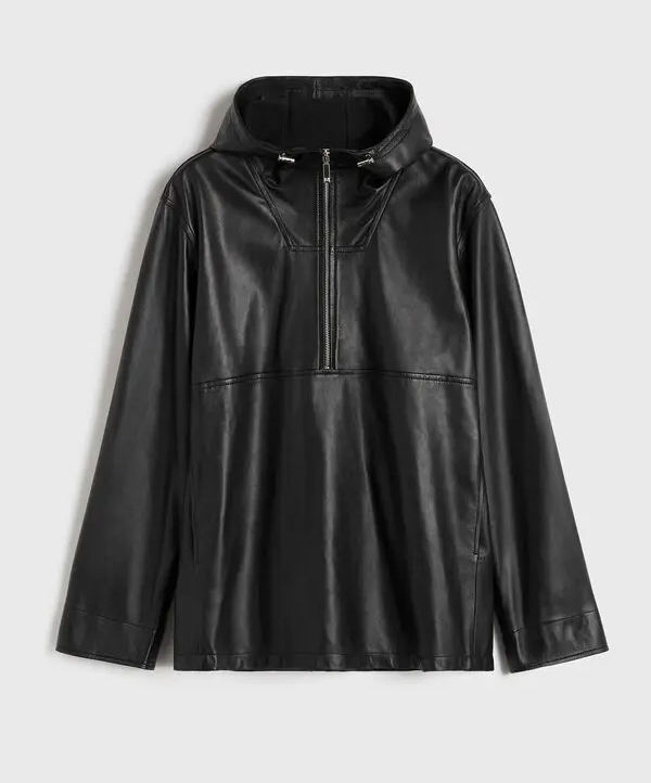 Anorak Style Tan Brown Hooded Leather Jacket Premium Cowhide Leather Half-Zip Sportswear Casual Formal Leather Anorak Jacket