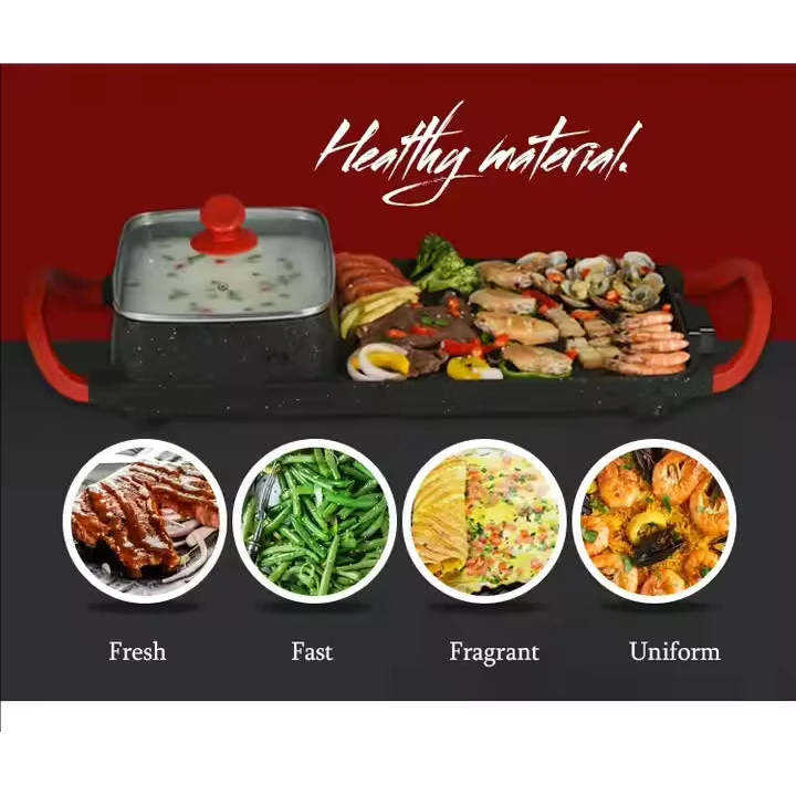 Royalstar 1200W Multifunction 2 In 1 Electric skillets With Hot Pot Smokeless Indoor Electric Bbq Grills Temperature Control