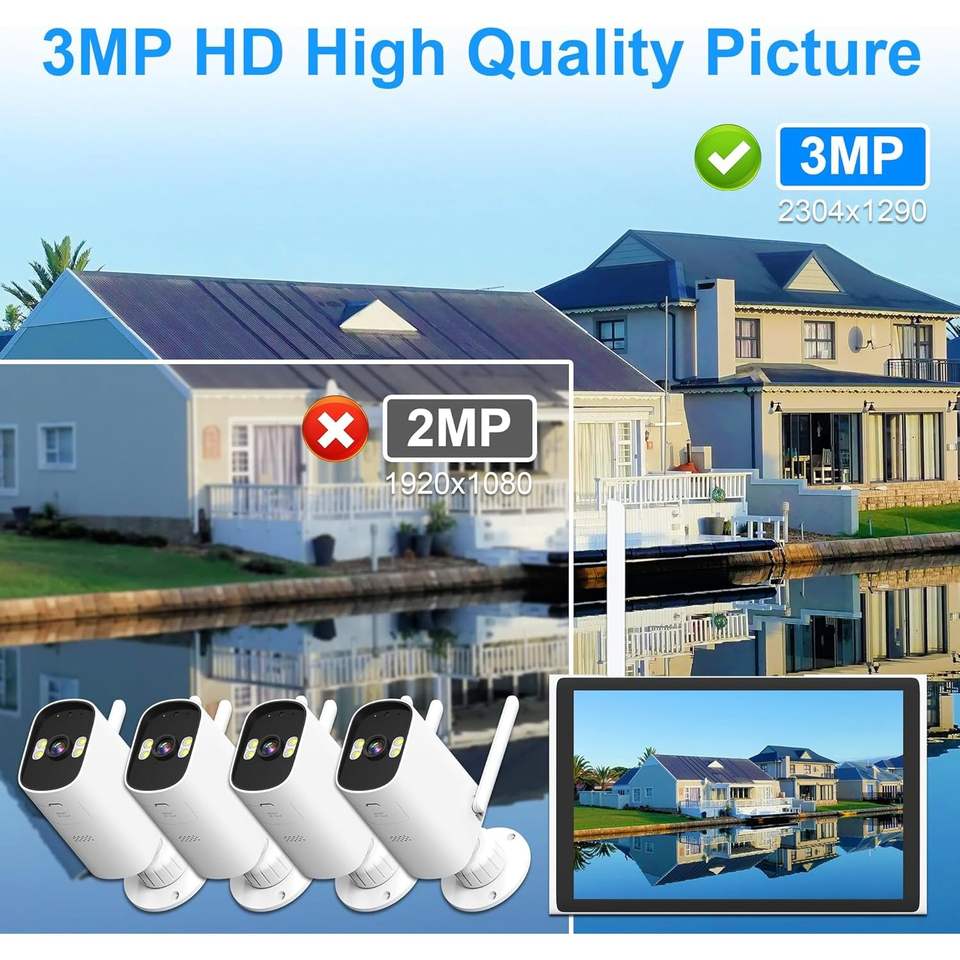 Antela Wireless Surveillance Camera System 4pcs 1080p H.265 with 10ch NVR Monitor Outdoor Security Audio Cloud Storage