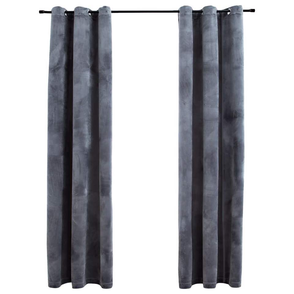 Anthracite 37"x95" Velvet Blackout Curtains with Rings 2-Piece Set