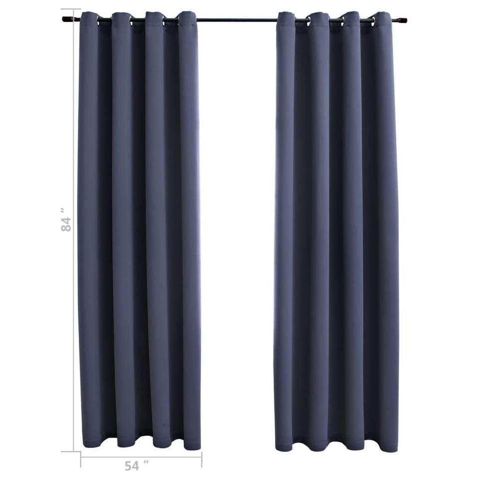 Anthracite 54"x84" Fabric Blackout Curtains with Rings 2-Piece Set