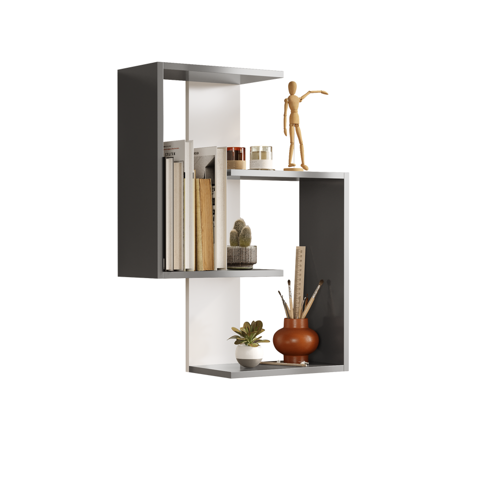 Anthracite/White Lisbon Contemporary Wood Wall Shelf Elegant Stylish Modern Office Organizer for Living Room Free Shipping