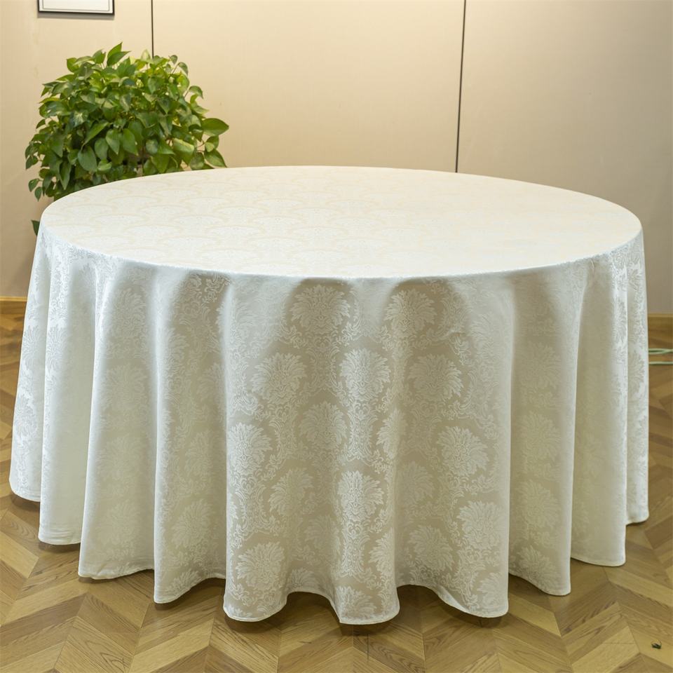 Anti Fade Ivory 120 Inch Round Jacquard Polyester Waterproof Eco-Friendly Floral Damask Tablecloth for Wedding Use