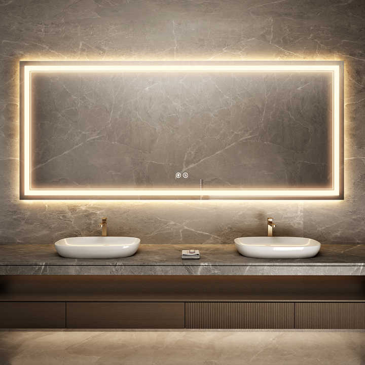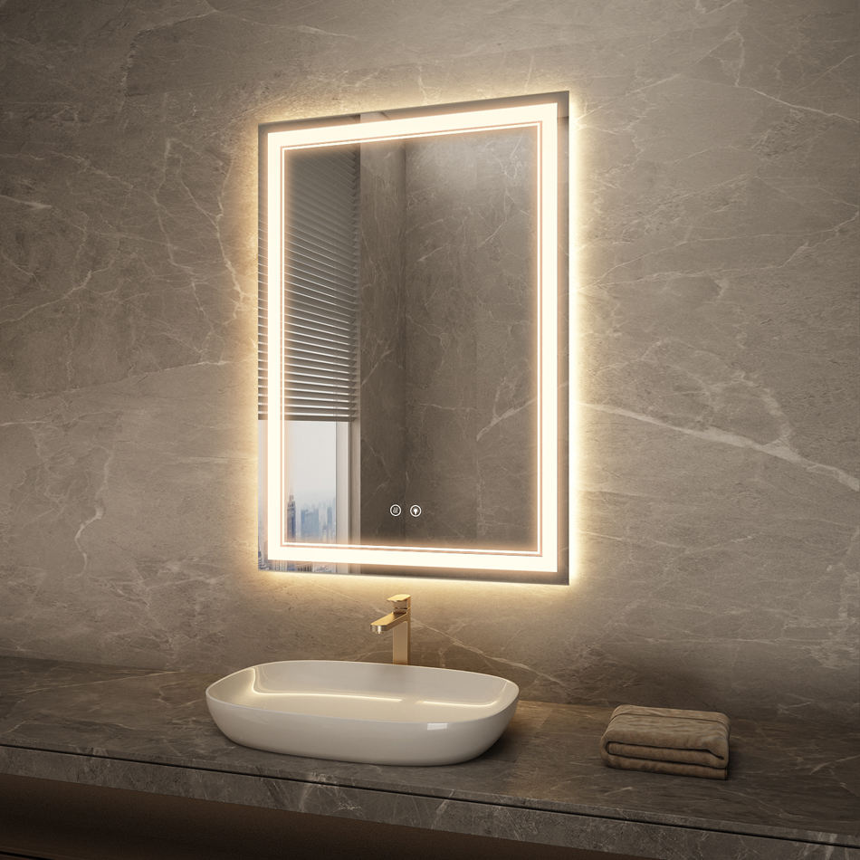 Anti Fog Frameless LED Bathroom Mirror With Sandblasted Edges and Modern Backlit Design