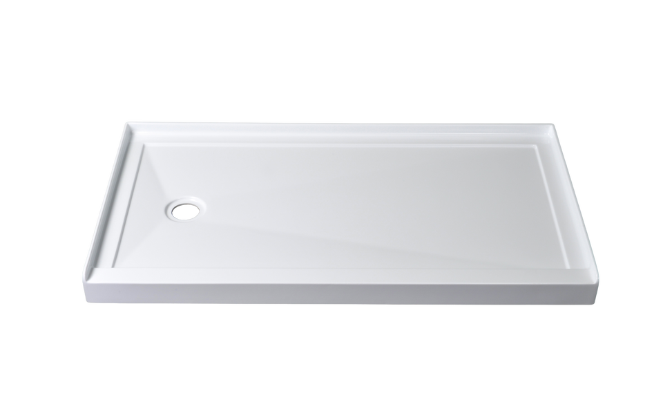 60\" X 32\" Single Threshold Shower Pan Rectangle Acrylic PVC White Base Slip-Resistant Drain Cover Left Drain Location Bathroom