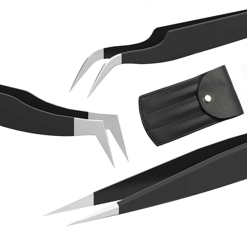 Anti Magnetic Anti Acid Stainless Steel ESD-12 Anti-Static Black Slanted Eyebrow Eyelash Tweezers
