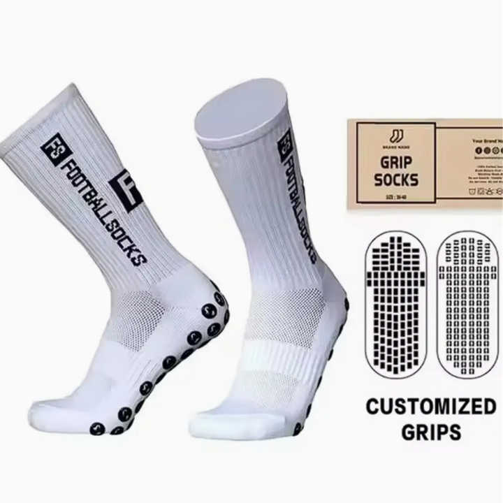 Anti Slip Unisex White Black Football Men's Designer Logo Packaging Non Slip Crew Soccer Custom Grip Sports Socks Men