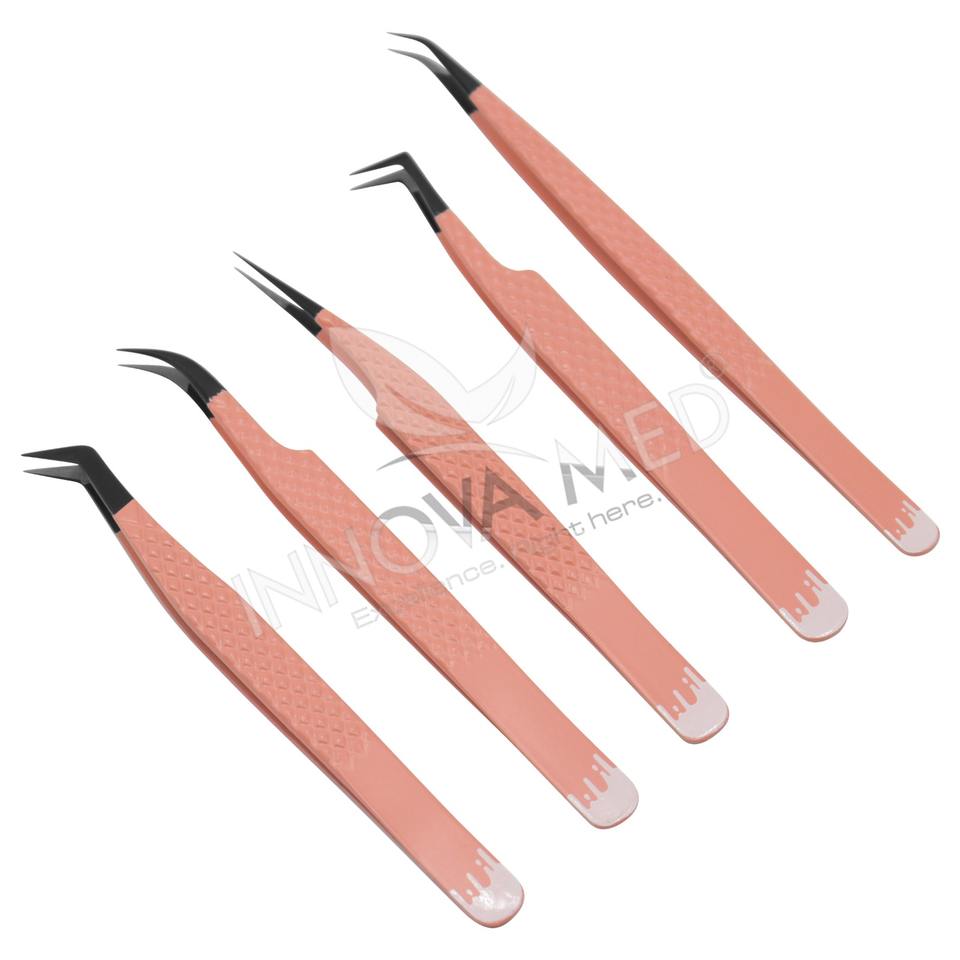 Anti-Static Tweezers with Different Angled Tips Non-Slip Grip Tweezers New Colored Best Tweezers for Volume Lash Extensions