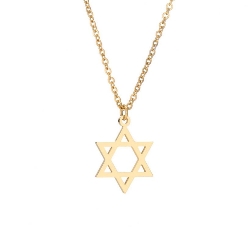 Anti Tarnish Gold Necklace 18K Real Stainless Steel Star of David Necklace Jewish Star Religious for Women Men Girls