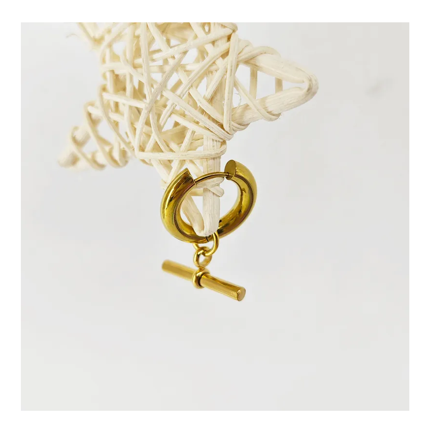 Women's Anti-Tarnish OT Shape Huggie Earrings Smooth High-Polished Stainless Steel with 18K Gold Plating and Pearl Studs
