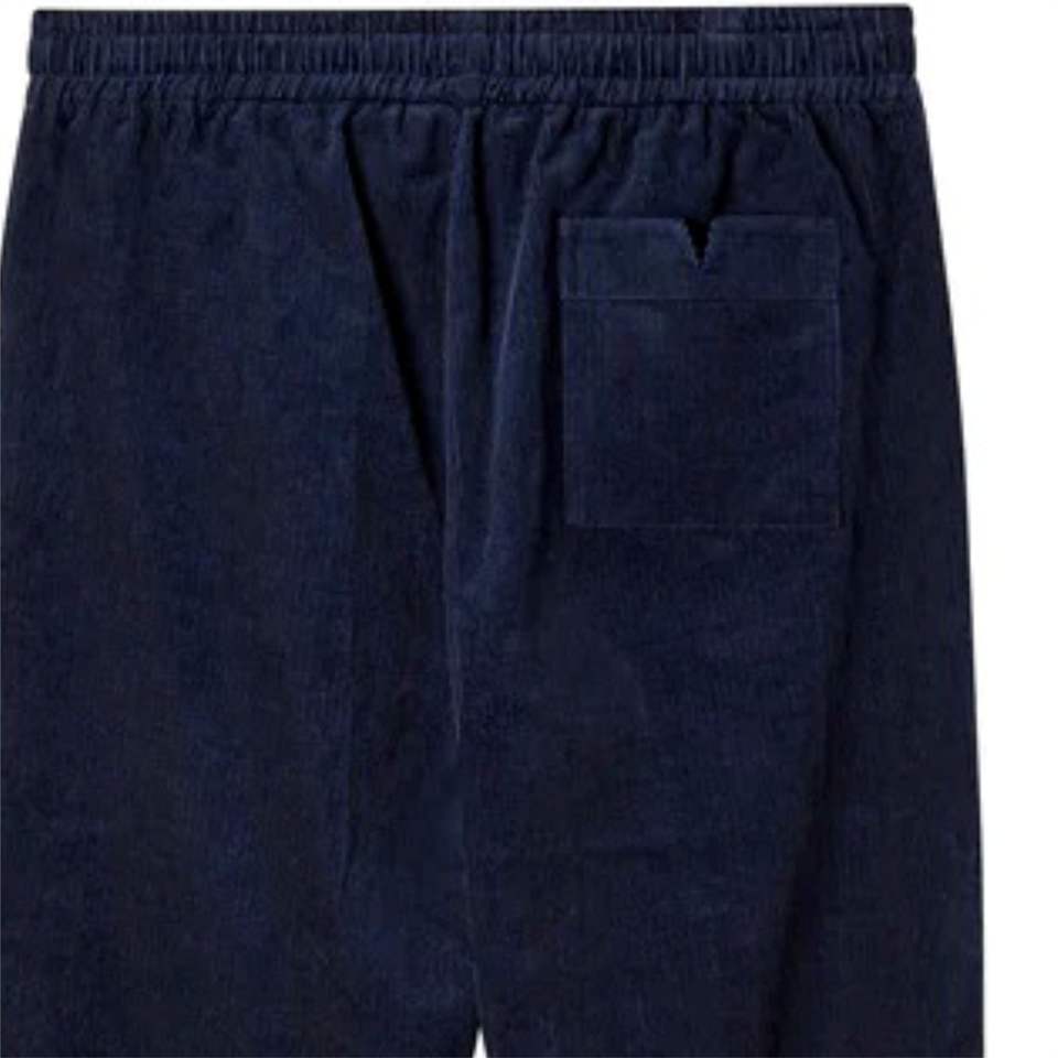 Anti-wrinkle Man Trouser Plain Dyed Elastic-waist Navy Corduroy Pants With, Zippered Side Pocket, Crafted From Plush 100% Cotton