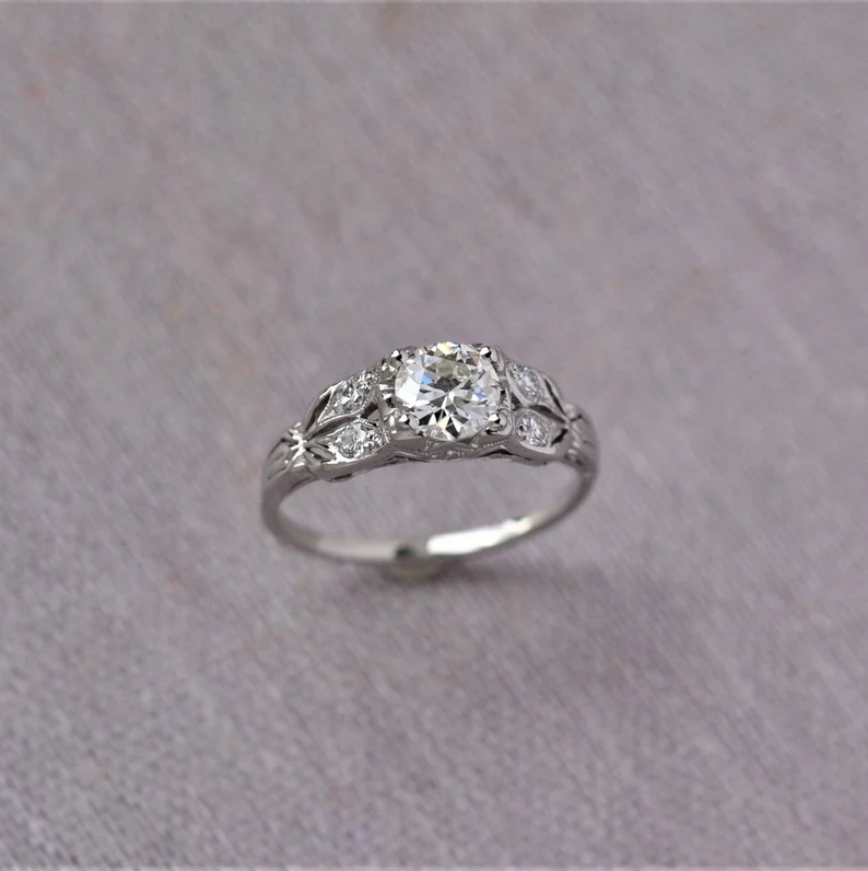 Antique 14K Solid Gold Ring round Cut Lab Grown Diamond Engagement Wedding Anniversary Gift for Mother Women's Party Decor