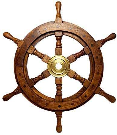 Antique 16-Inch Nautical Model Elegant Wood Craft Polished Wooden Box and Wall Hanging Ship Wheel for Home/Office