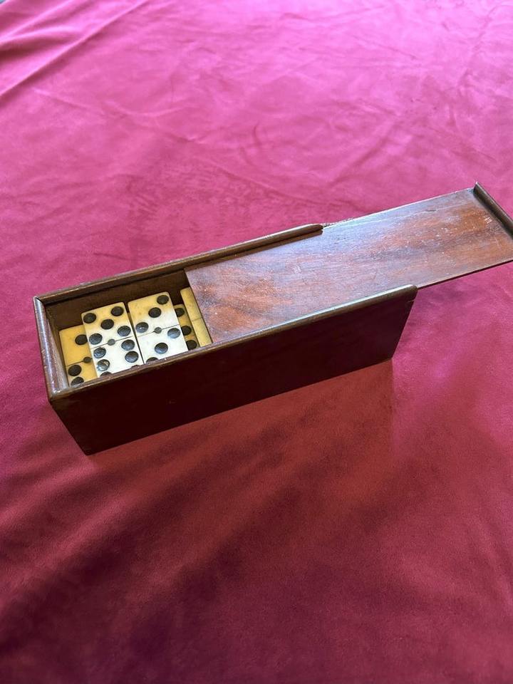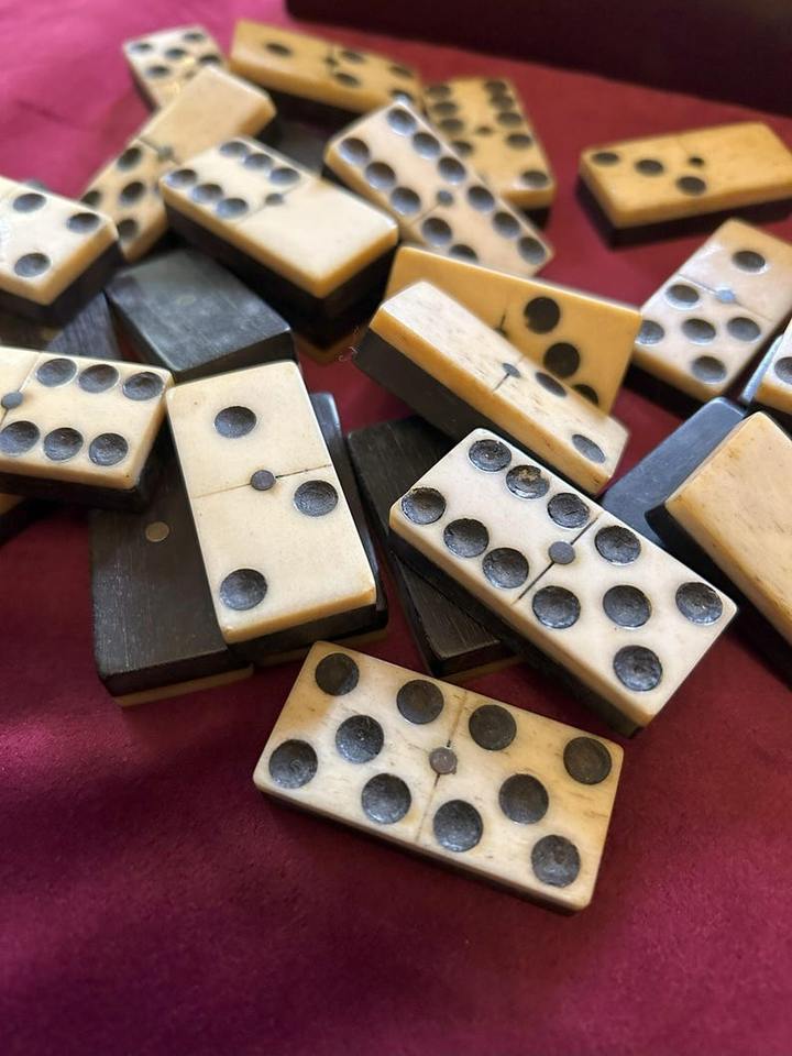 Antique 19th Century Domino Set, Bone & Ebonised Wood Complete Set by crescent crafts