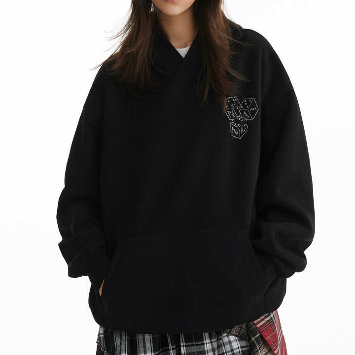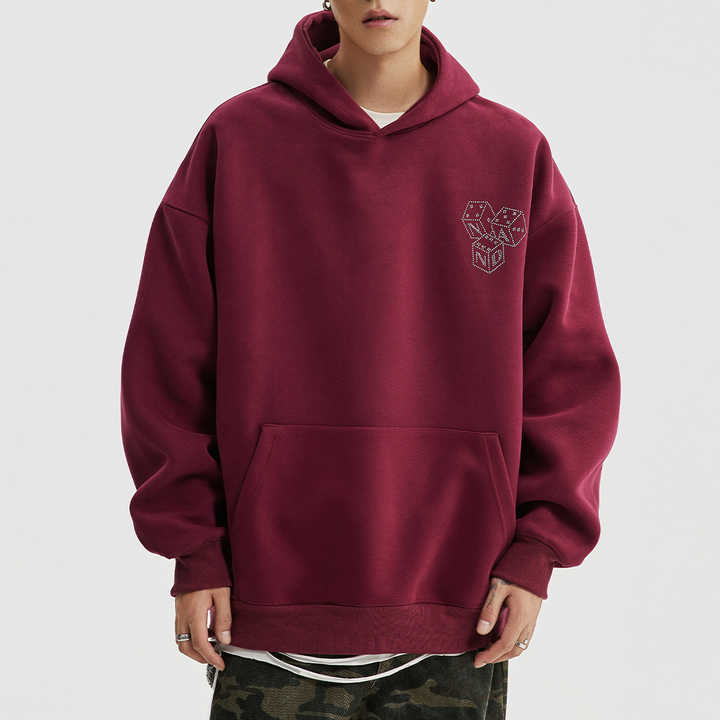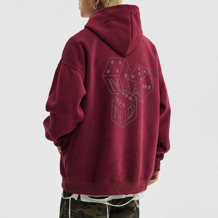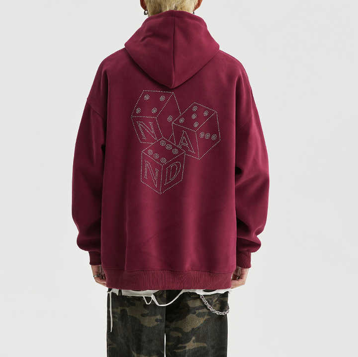 Antique 2025 New Vintage Unisex Winter Hoodie Loose Fit 3D Rhinestone Dice Embroidered Heat-Transfer Customized Logo 100% Cotton