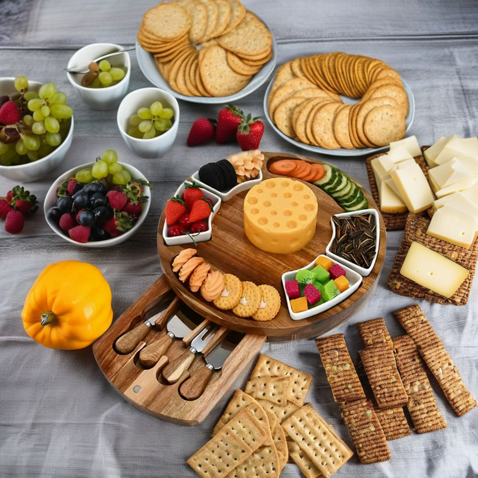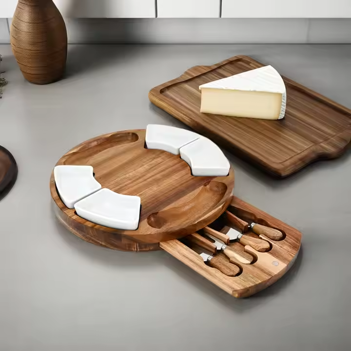 Name:Wood Cheese Board Set with Slide-Out Drawer