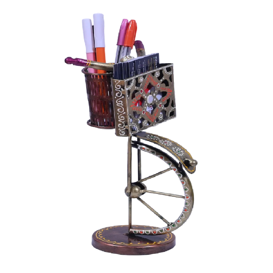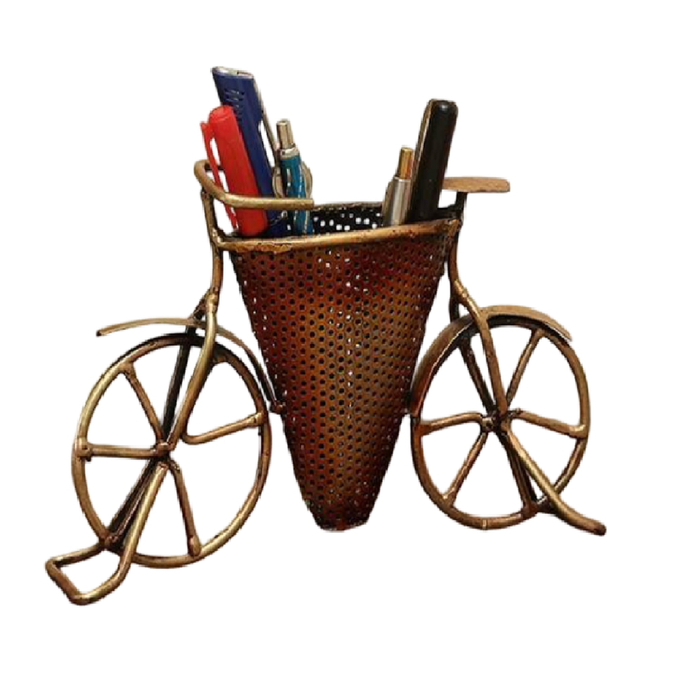 Antique Bicycle Design Metal Pen Holder Unique Shaped Home Decorative Sculpture for Tabletop Handmade Technique for Home Office