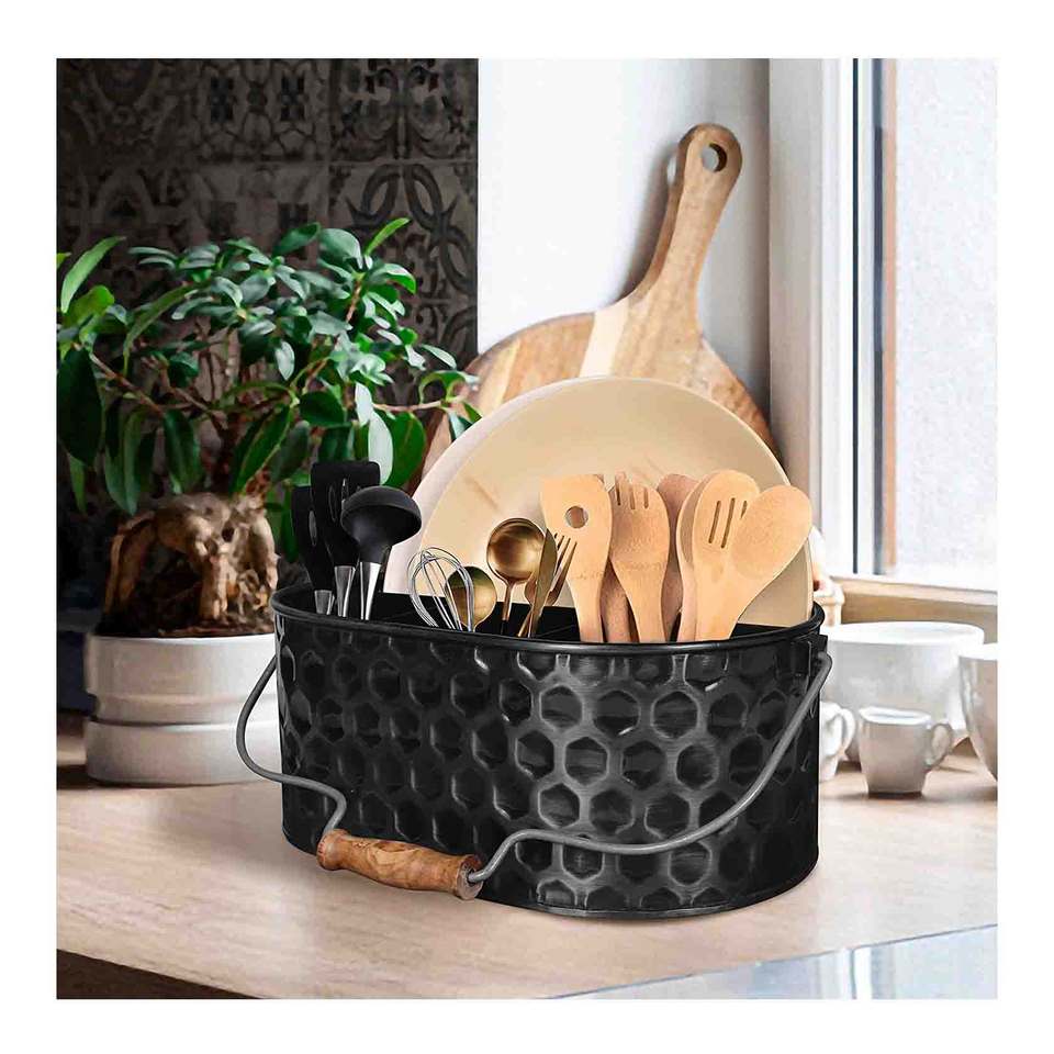 Hot Selling Antique Black Iron Kitchen Caddy Latest Design Metal Tableware for Tea Coffee Beer