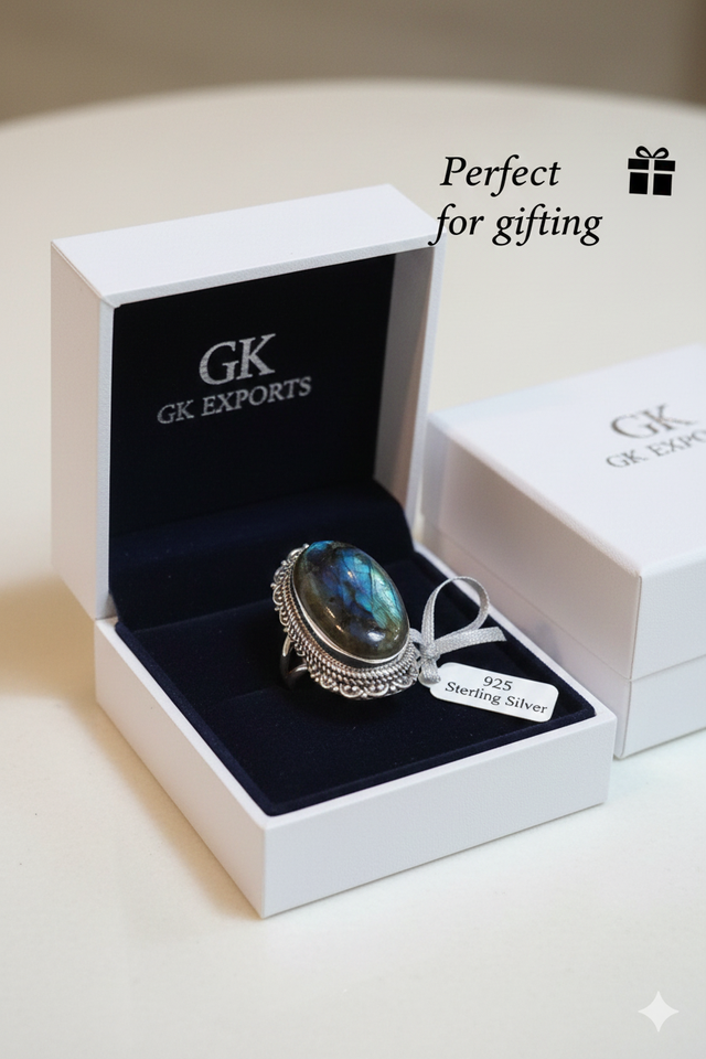 Antique Blue Labradorite 925 Sterling Silver Women's Wedding Engagement Ring Bohemian Style Bezel Setting Pear Shape Gift