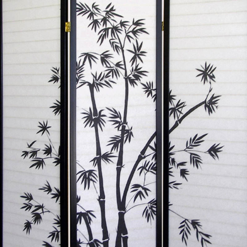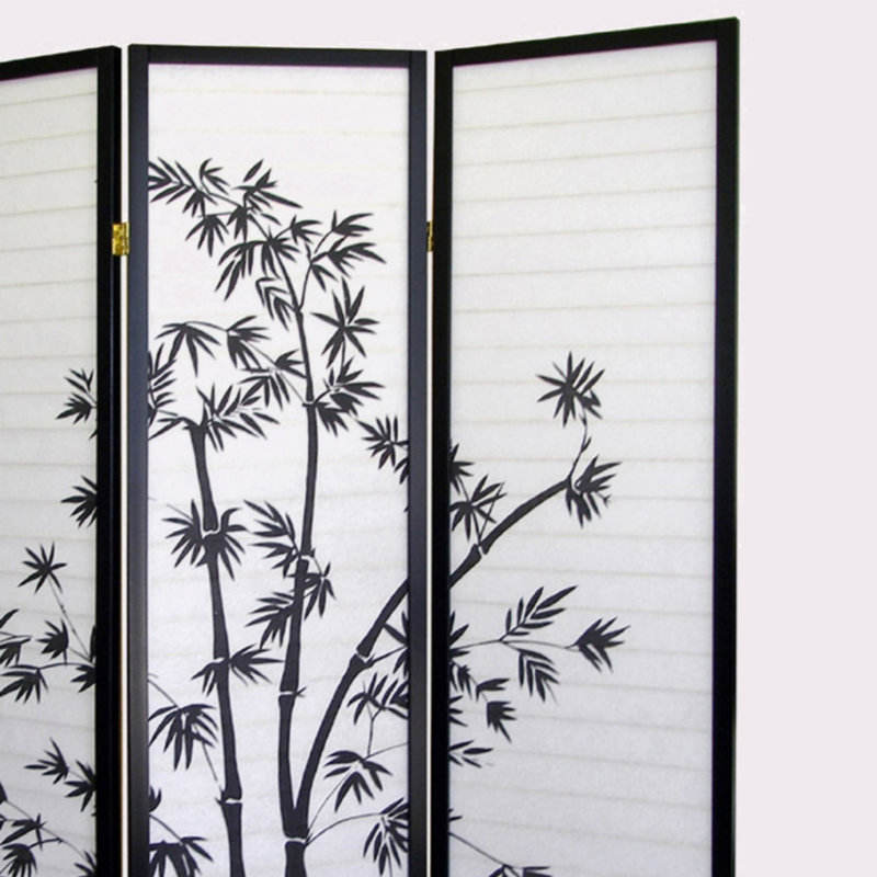 Antique Bohemian 70\" Tall 3-Panel Screen Room Divider Bamboo Design with Black Finish Foldable and Movable for Indoor Use