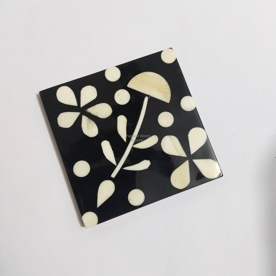 Antique Wood Table Top Bone inlay Coasters Set Round Bone Inlay & Drink Mats Home Decor for Table Decoration