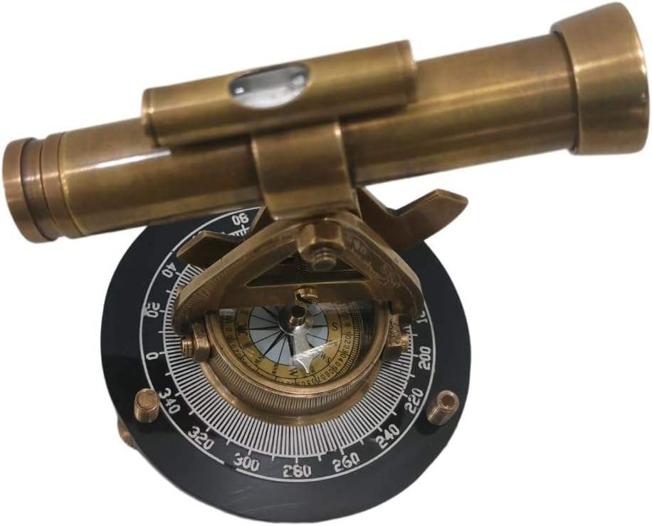 Antique Brass Alidade Compass Telescope with Black Base Polished Nautical Maritime Navigation Instrument Metal Crafts