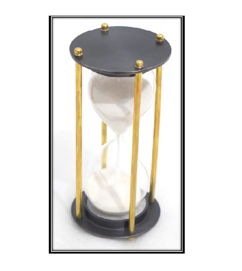 Antique Brass Aluminium Traditional 4-Pillar Hourglass Functional Sand Timer Souvenir Two-Tone Antique Finishing 16cm Height for