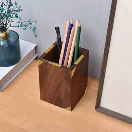 Antique Brass Art Deco Hanging Pen Stand Handmade Desk Organizer Classic Stationery Holder for Office and Study Table