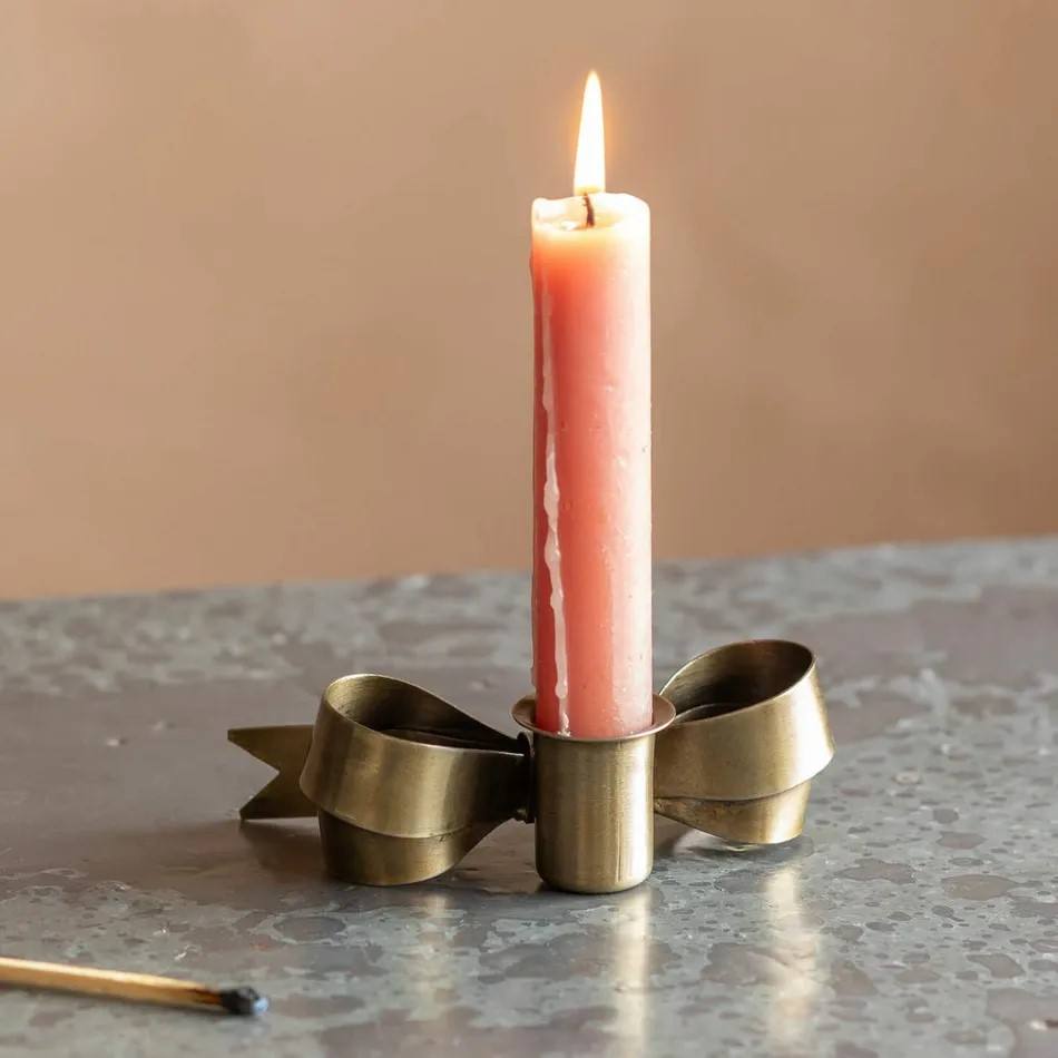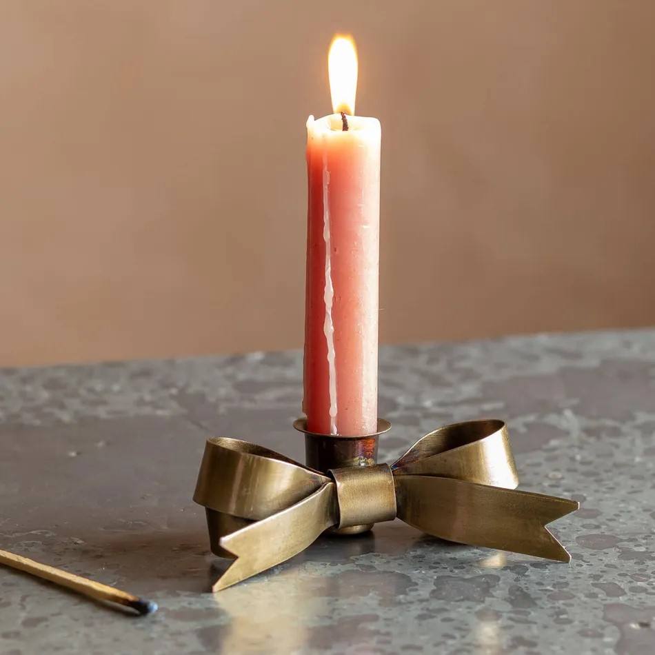 Antique Brass Bow Design Candle Holder Elegant Handmade Decor Piece Perfect for Romantic Ambiance and Festive Home Decor