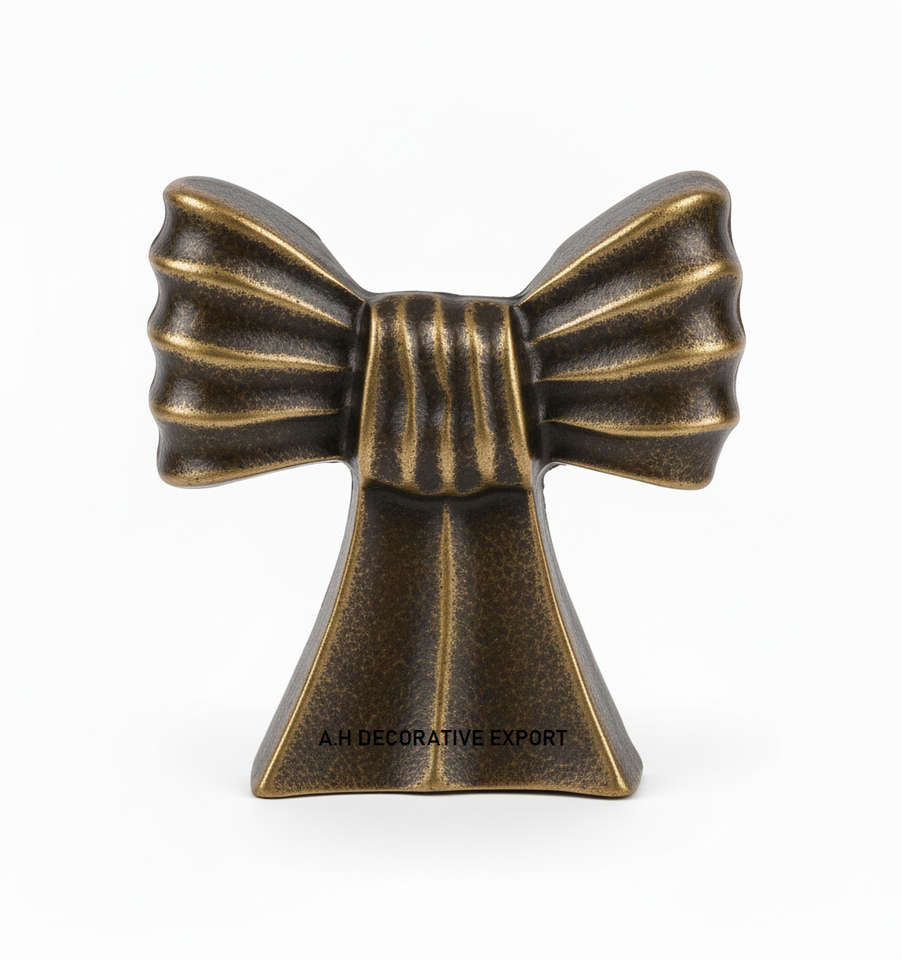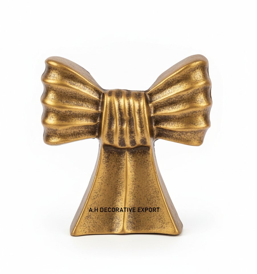 Antique Brass Bow Object | Handcrafted Metal Ribbon Sculpture Vintage Finish Modern Design for Luxury Home Office Decoration