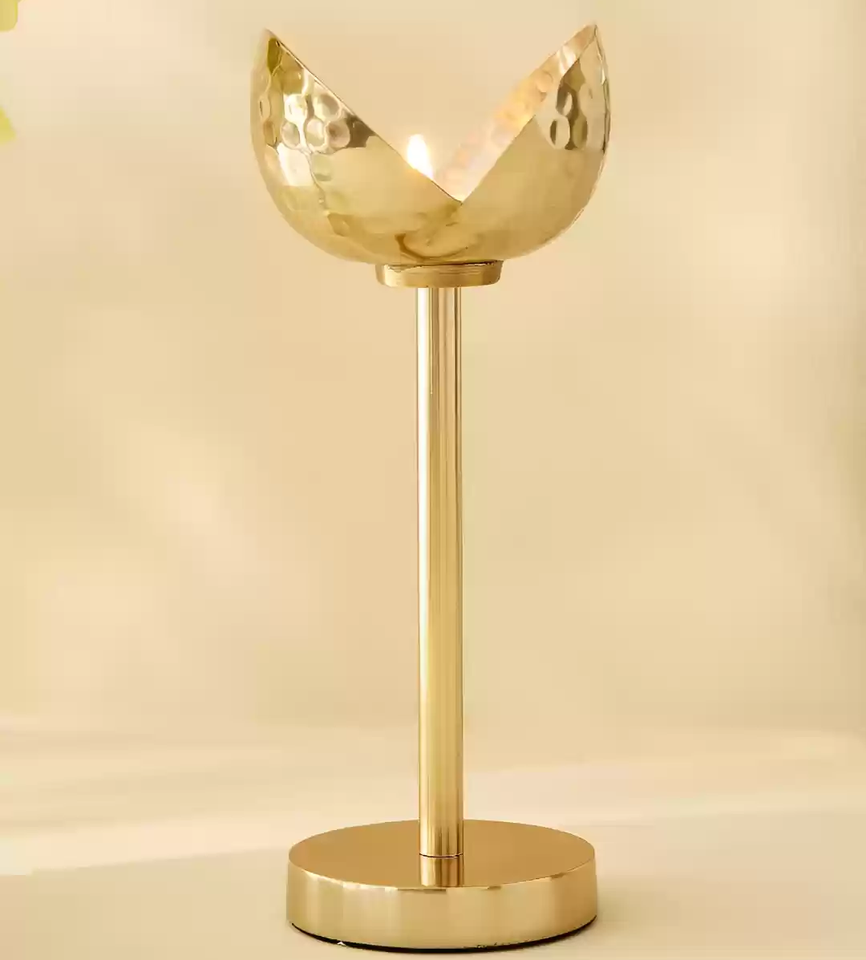Antique Brass Candle Holder And Pillar Flower Design product Customizable Latest Design Brass T- Candle Holder