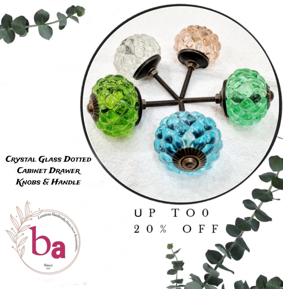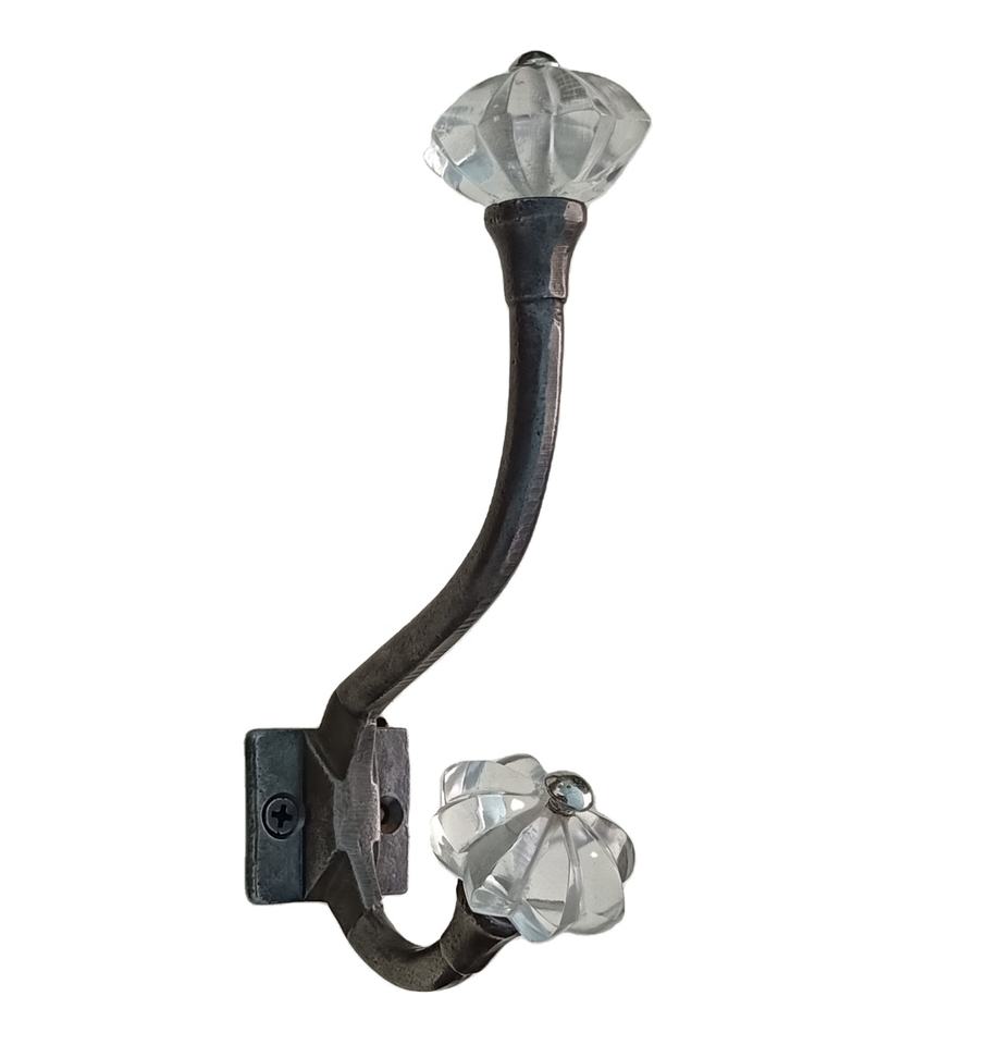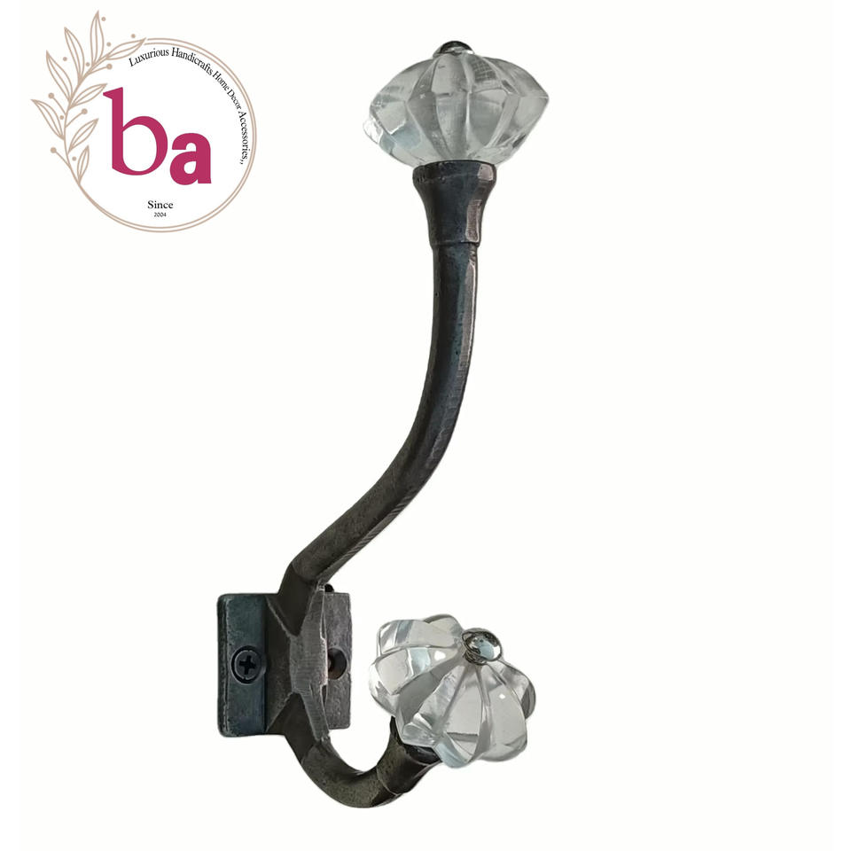 Antique Brass & Cast Iron Coat & Hat Hooks Handcrafted with Crystal Melon Knob