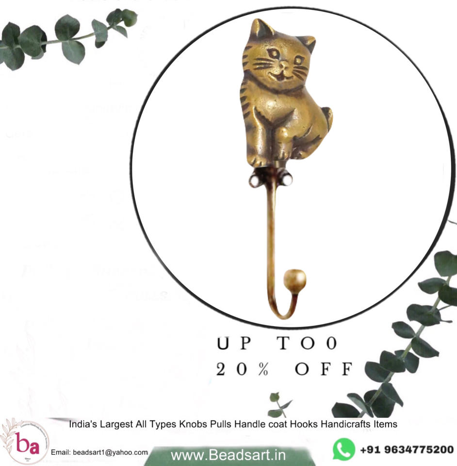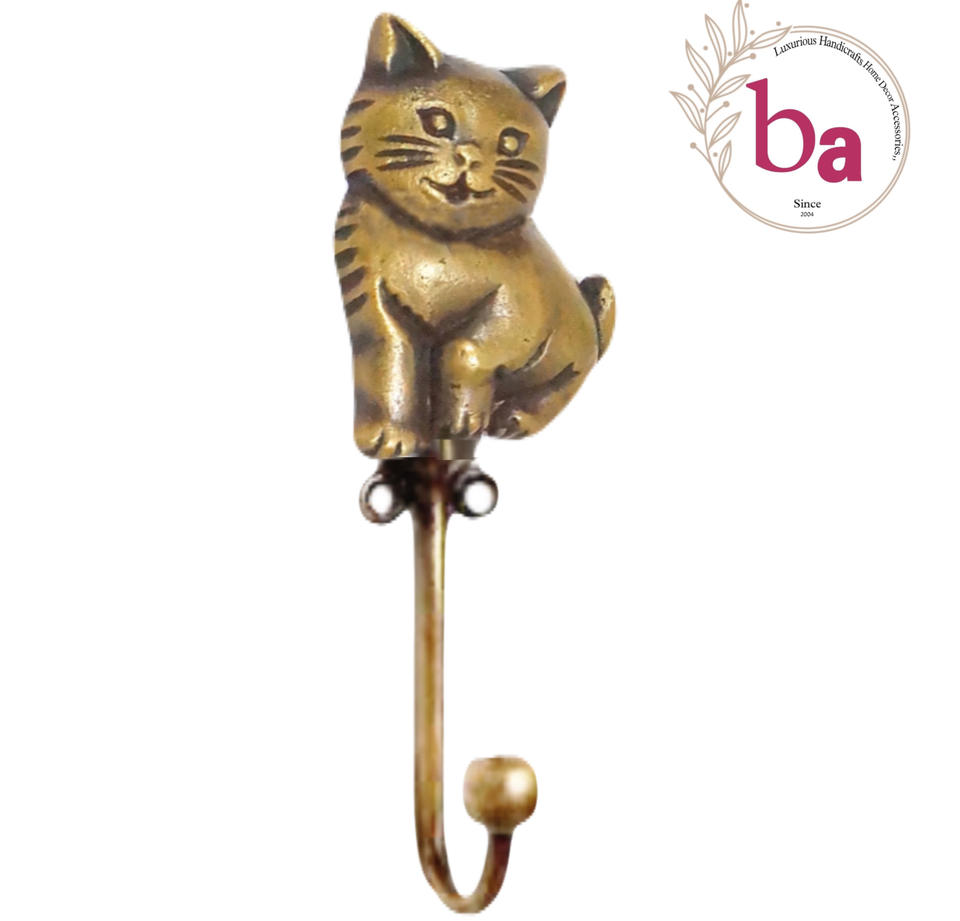 Antique Brass Cat Animal Wall Hook Handcrafted Cast Iron Coat and Hat Hanger Product Category Hooks & Rails