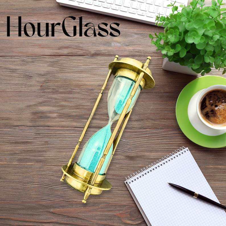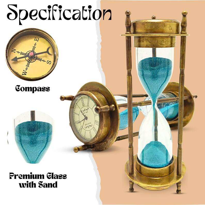 Antique Brass Compass Hourglass Nautical Maritime Sand Timer & Desk Clock Clock Decorative Sandglass Best for Gifts