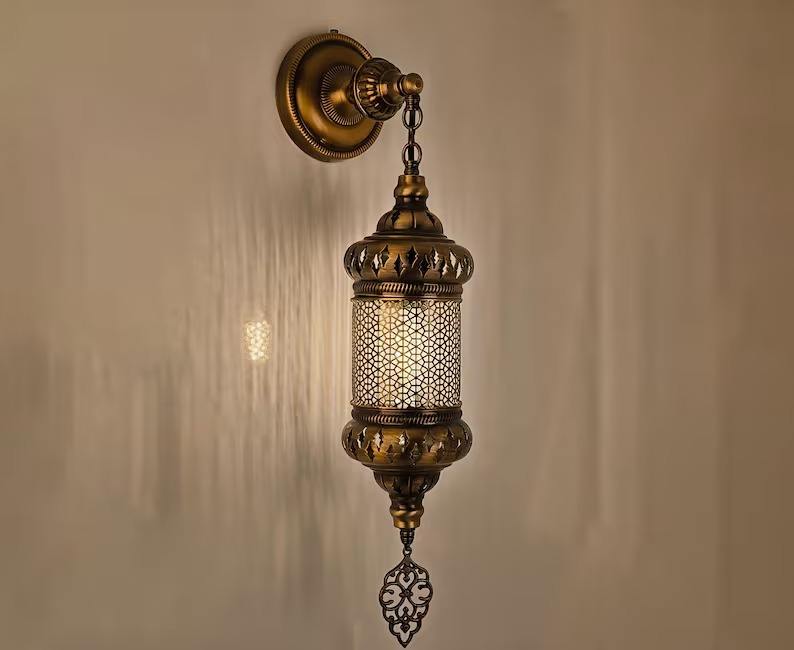 Antique Brass Elegant Moroccan Style Wall Lantern with Intricate Metal work for Home and Festive Decor