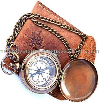 Antique Brass Engraved Nautical Chain Compass Digital Display Metal Navigation Compass Maritime Gift Hiking Marine Outdoor