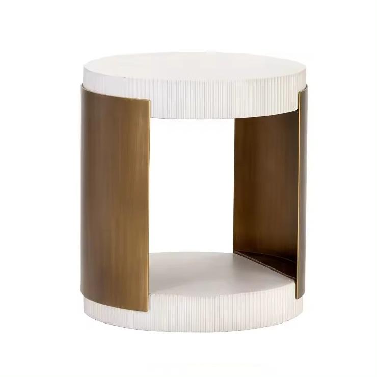 Antique Brass Finished Stainless Steel Corners Side Table with White Washed Wooden Top and Base Used for Living Room Interior