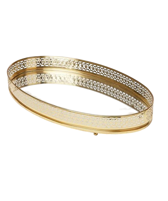 Antique Brass Finishing Decorative Metal and mirror Tray Rectangle shape With Vintage Style