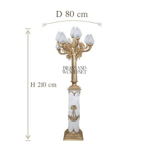 Antique Brass Floor Lamp with Marble Base and Five Arm Design Featuring Frosted Glass Shades for Classic Luxury Interiors