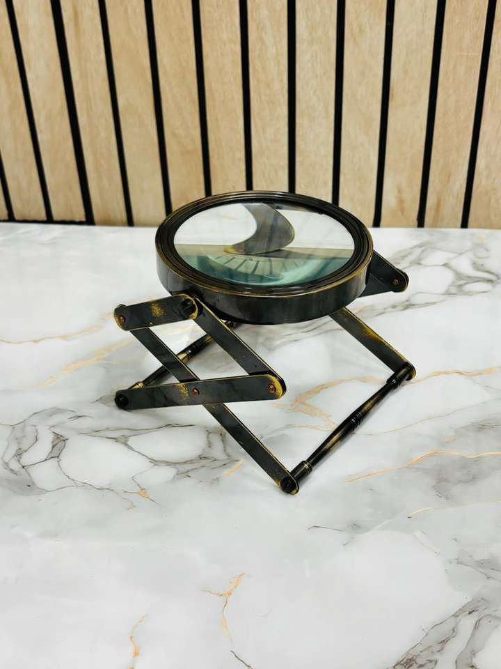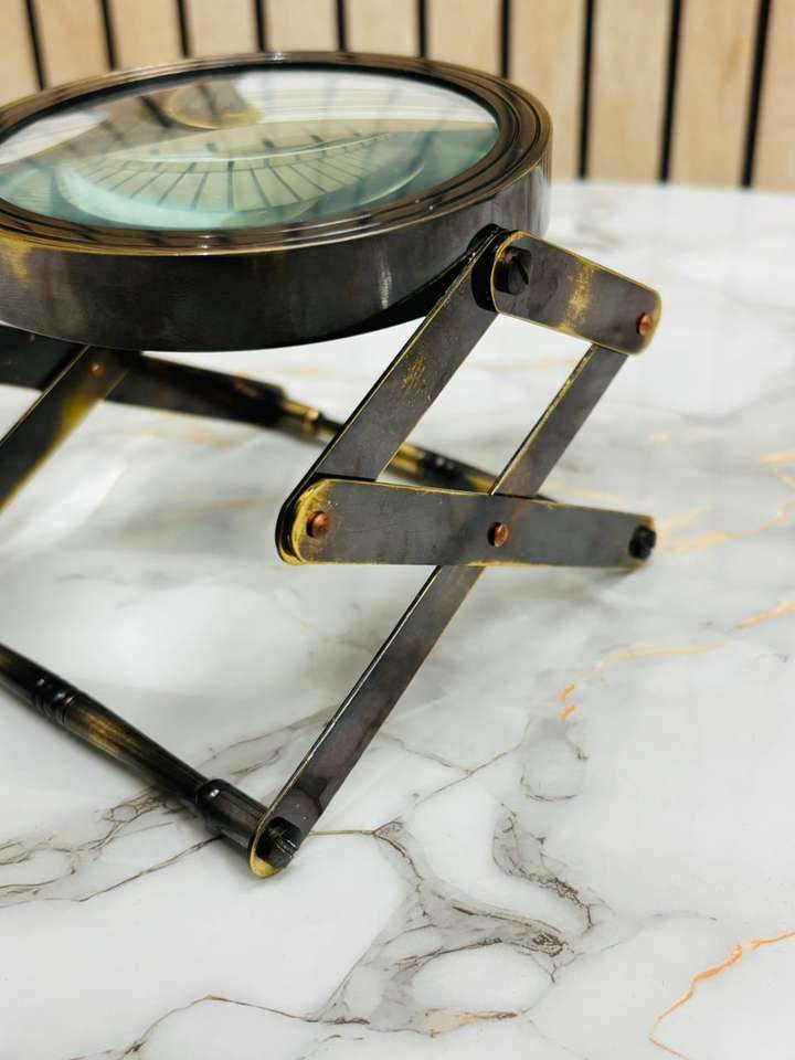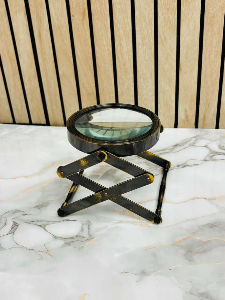 Antique Brass Folding Stand Magnifying Glass | Adjustable Desk Magnifier for Reading & Inspection