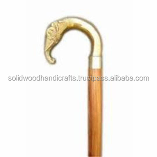 Antique Brass Handle Wooden Vintage Style Designer Walking Stick Cane Vintage Solid Brass Handle Designer Style Wooden Cane